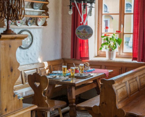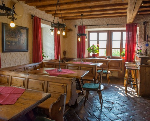 Die rustikale Stube mit einer 400 Jahre alten Holzdecke eignet sich hervorragend für einen gemütlichen Abend unter Freunden. In der kleinen Schank kann das Bier direkt aus dem Kühlraum gezapft werden. Ob eine Geburtstagsfeier oder ein Vereinstreffen, in der urigen Gaststube wird Ihre Veranstaltung sicher ein Erfolg.
